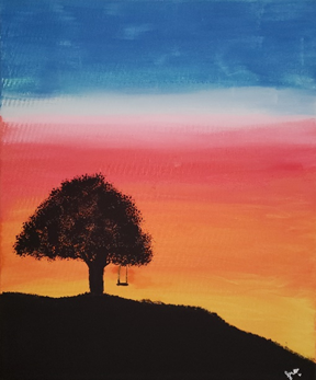 A few days ago, I received my package of art for adoption in the mail. I was delighted, but also a bit astonished that this picture was painted by a twelve-year-old! It is painted on canvas, a miracle in itself as another doner brought Annabeth a boatload of real painting supplies. It was Annabeth’s idea to paint a little swing hanging in the tree in my picture—an empty swing now—that represents her faith in God for a new brother or sister in the future.